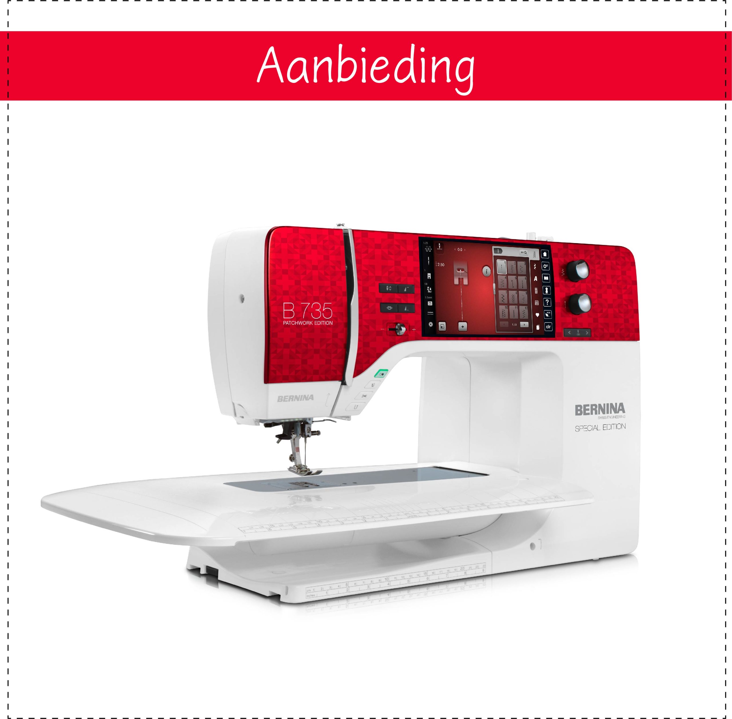 Het laatste rode Bernina 735 pareltje uit onze collectie. De mooie grote rode 7-serie patchwork edition machine met smal transport en rode boventransportvoet.