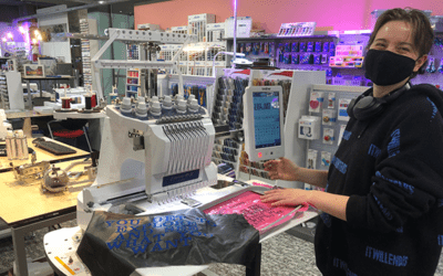 Clodagh Read maakt haar project voor haar graduation van de Design Academy bij INGEnaaimachines