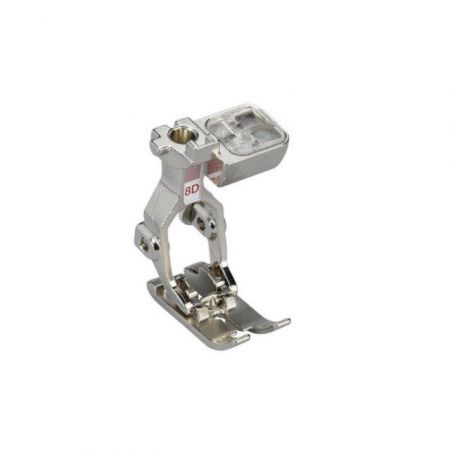 De jeansvoet #8D is in het bijzonder geschikt voor naden met rechte steken in dikke, harde materialen zoals jeansstof, linnen of zeildoek. Ook meerlagige stoffen profiteren van zijn bijzondere opbouw. De stiksteekplaat met het steekgat geeft de naald zoveel mogelijk stabiliteit terwijl de vlakke voetzool het glijden over de dikke stoflagen vergemakkelijkt. Maar ook voor rechte steken op middelzwaar en dun materiaal is de jeansvoet #8D ideaal. Let er a.u.b. op dat het nieuwe BERNINA dubbeltransport alleen met type D naaivoeten functioneert. Ontdek nu de jeansvoet #8D – uw betrouwbare partner voor het werken met stroef en robuust materiaal.