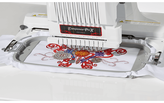 De PR1050X verwerkt met gemak grotere en zwaardere projecten zoals jassen, paardendekens en quilts. Dankzij het grote werkgebied en het ruime aanbod borduurramen en -frames kunt u borduren op nagenoeg ieder kledingstuk of iedere stof. Bovendien kunt u met tien naalden, tien verschillende garenkleuren gebruiken zonder ze te vervangen. Met de PR1050X kunt u oneindig veel artikelen voorzien van de meest prachtige borduurpatronen.