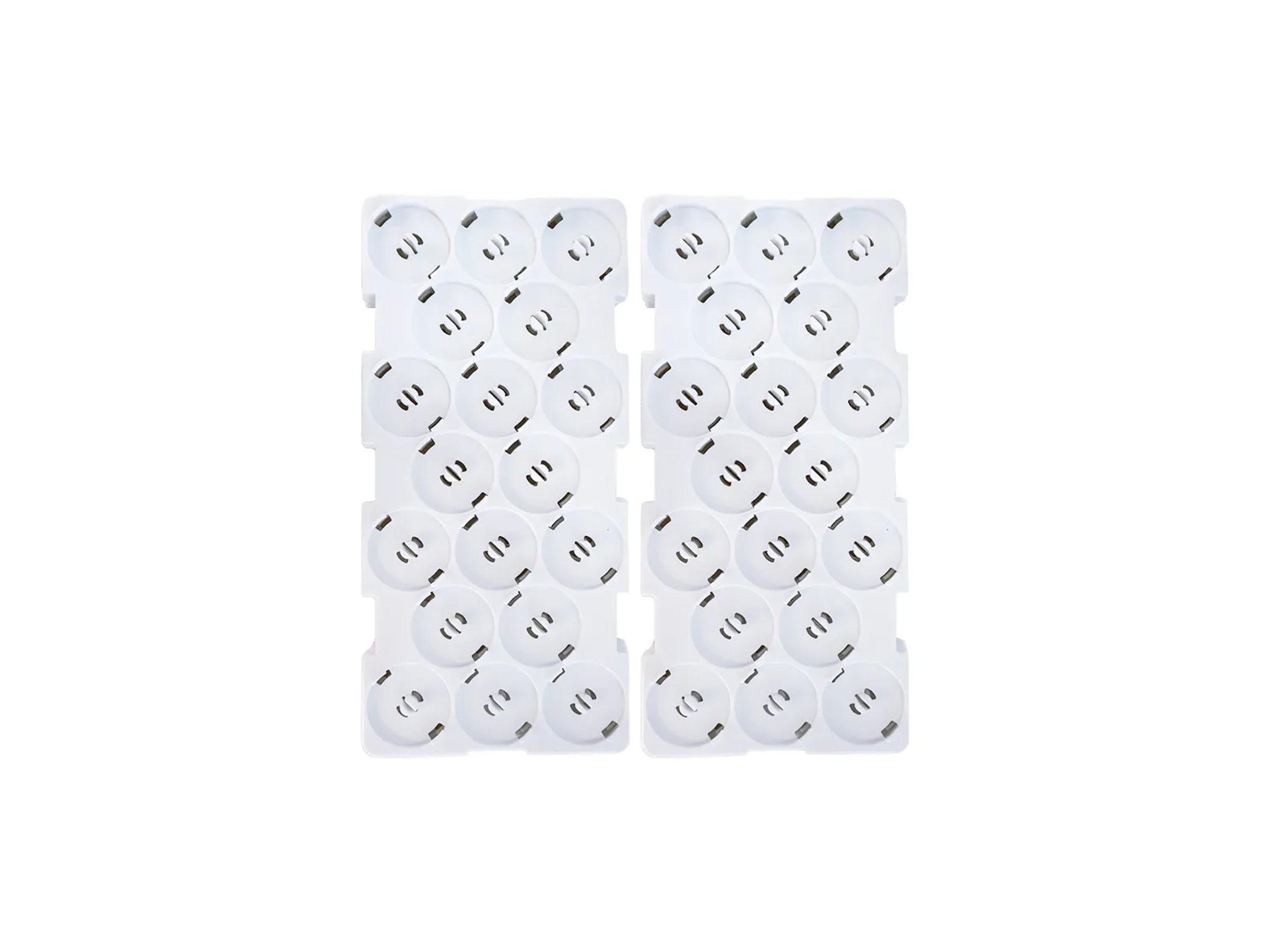 Inclusief 2 trays waar per stuk 18 klossen op passen.