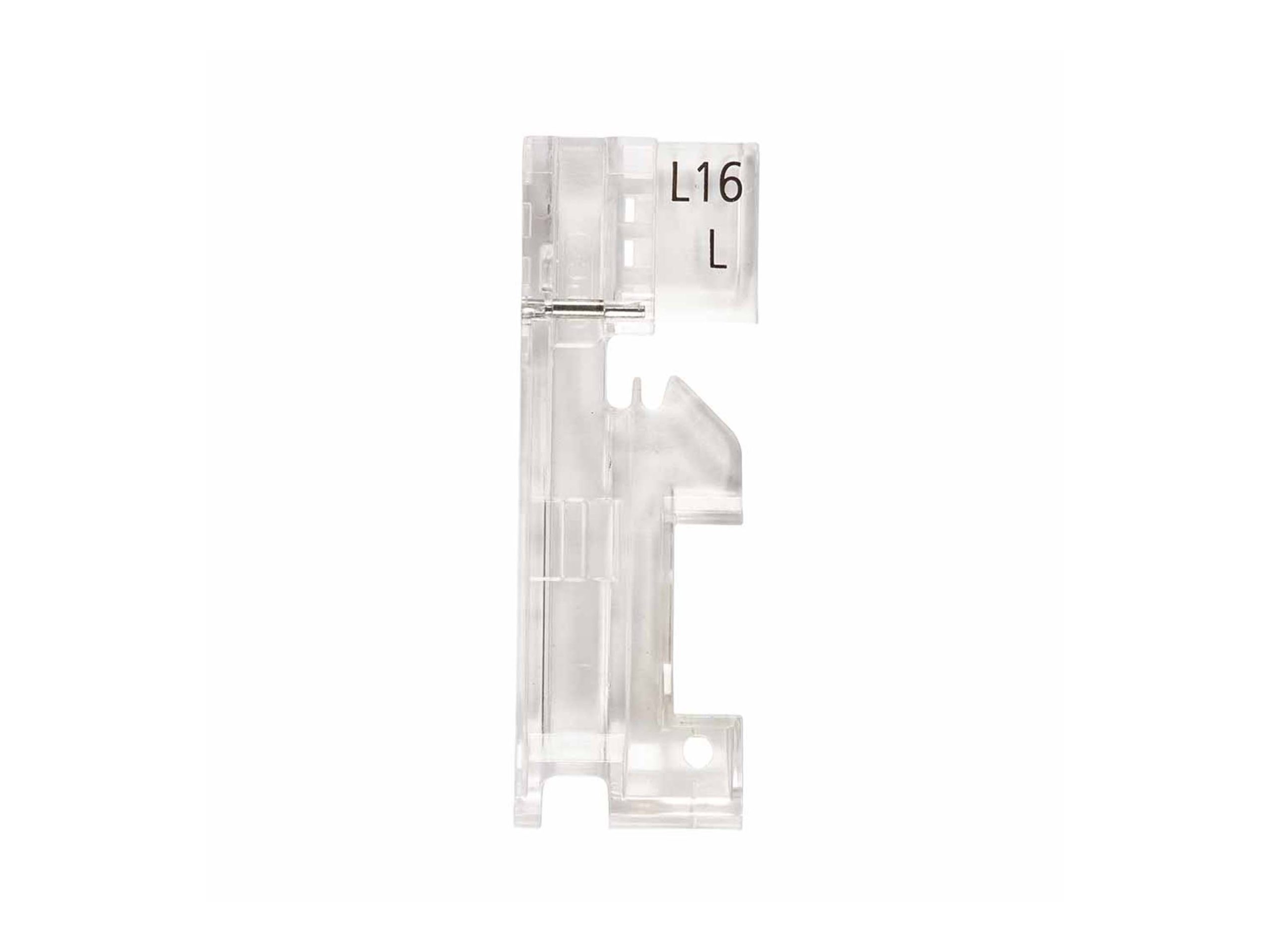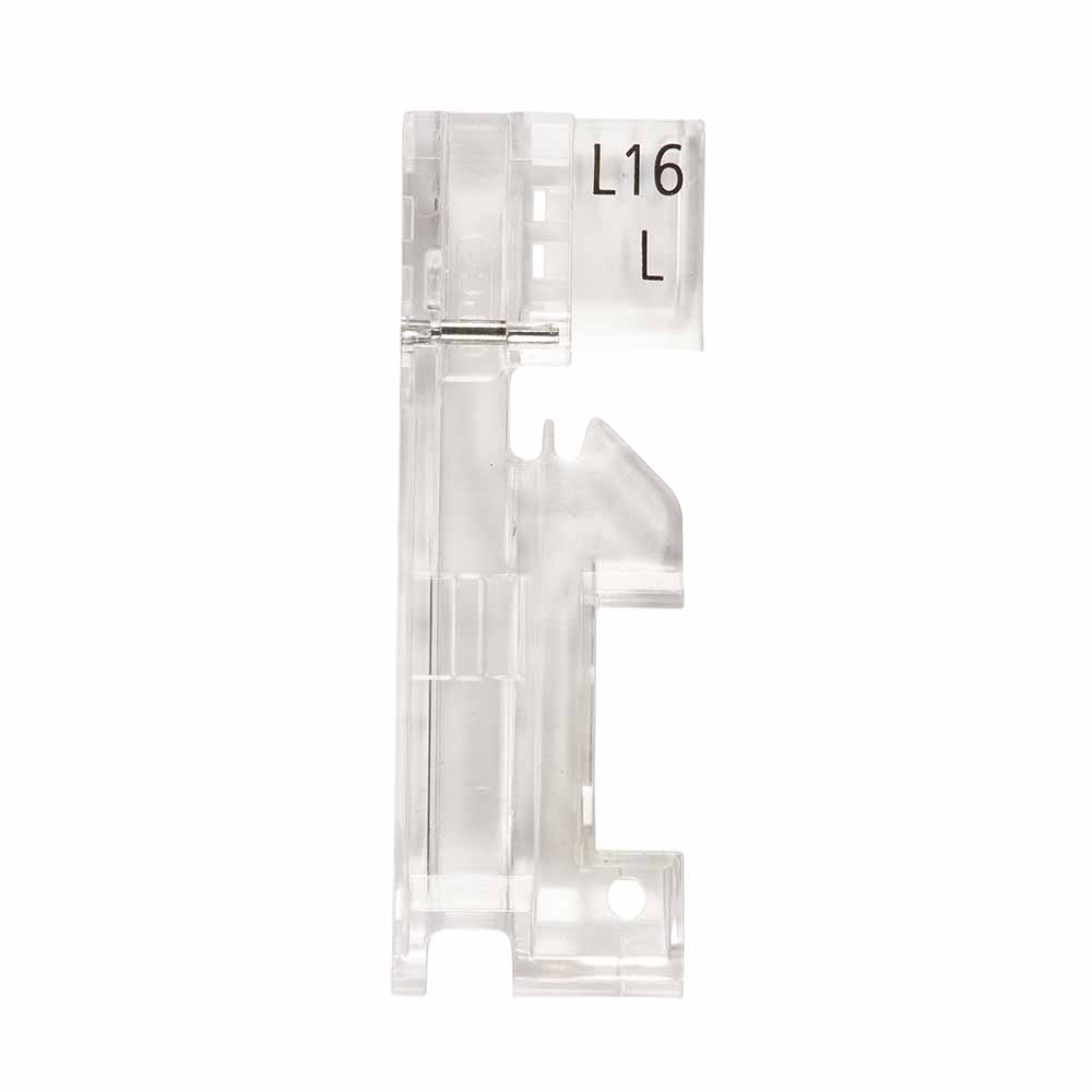 Met de paspelvoet XL worden paspels met een diameter van 6 tot 10 mm gemaakt en ingenaaid. De voet is geschikt voor 3- en 4-draads overlocksteken. Pas de hoogtecompensatiehendel aan door op de lip te drukken en deze in te stellen op de diameter van de paspel.
